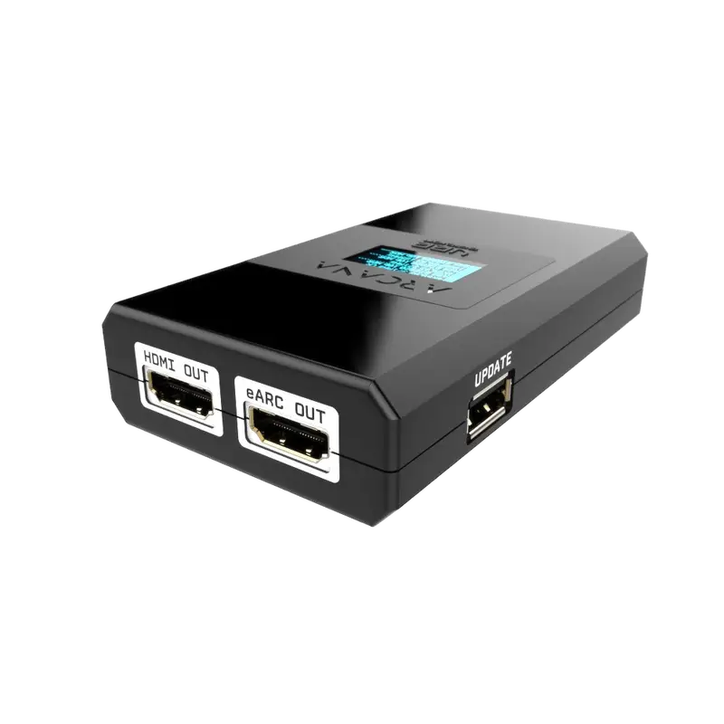 The Hdfury Arcana 2 8K VRR and HDMI 2.1 eARC/ARC/HDMI sound extractor that supports video and/or audio signal in existence today incl. VRR, DV, LLDV, HLG, HDR10+, DTS:X, ATMOS