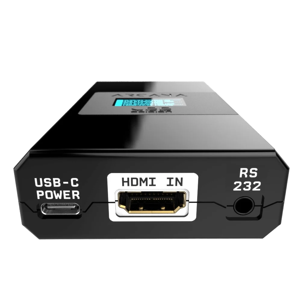 Hardware-wise, 8K Arcana 2 VRR features 1 HDMI input, 2 HDMI outputs with scaling option, 1 eARC output, USB type A for USB stick update, USB type C for power, RS232, OLED display and a rotary/wheel switch on the side allowing to navigate/select and perform changes in the device system menu. 8K Arcana VRR input is capable of 4K and 8K VRR/HDR/HLG/DV/LLDV/HDR10+ up to FRL5/40Gbps/1200MHz for video and support any sound format in existence today, HDMI TX0 and HDMI COPY video outputs are capable of outputting FRL5/VRR/40Gbps/1200MHz or upscaling/downscaling and all sound formats as well. 8K Arcana VRR is running in a Splitter/Pass-thru/Upscaler or Downscaler default mode ensuring your setup remains optimized at its best capabilities.